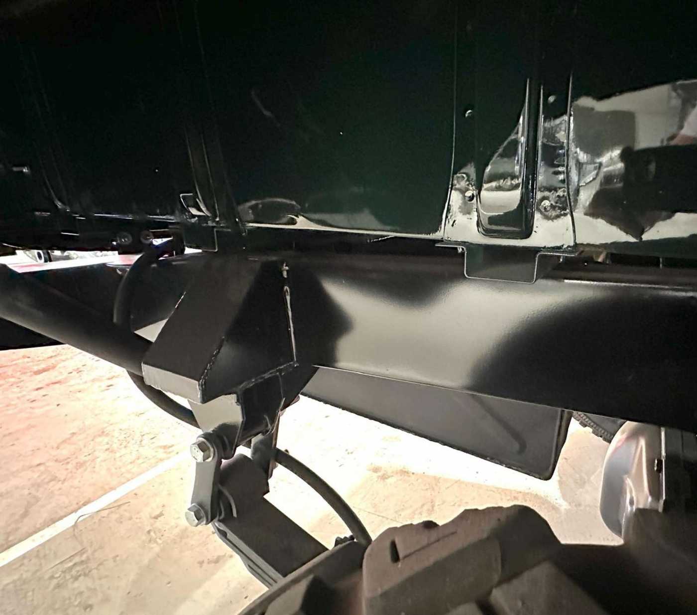 - Reserveradhalterung auf der Motorhaube mit Ledergurten